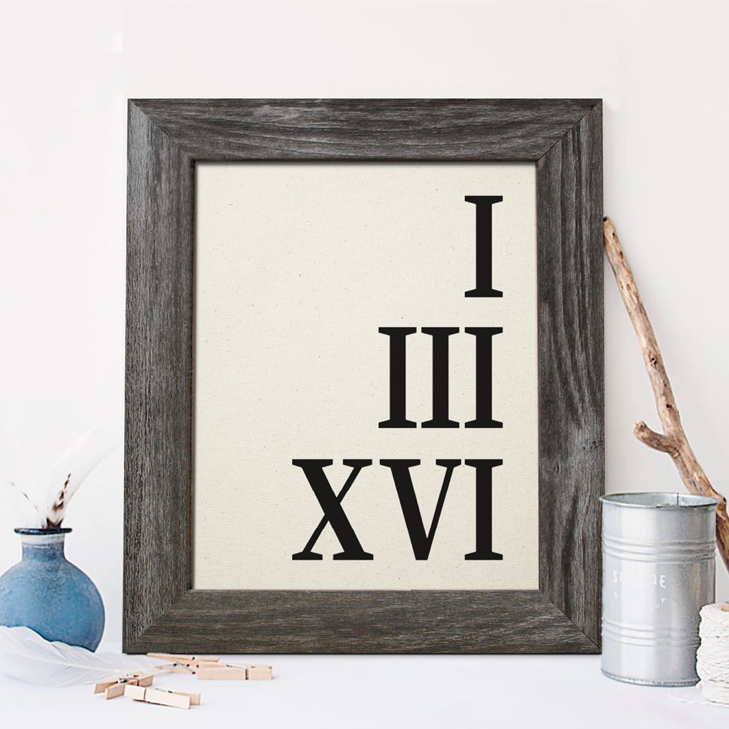 2nd Anniversary Gift, Romain Numeral Date Cotton Print